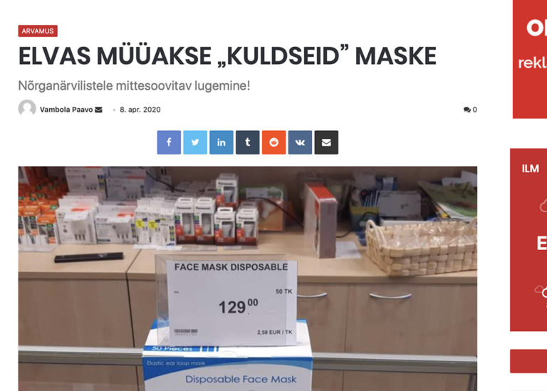 Elva väljaanne Elva Uudised kirjutab, et ühe maski hind on 2,58 eurot. Tegemist on nn kirurgimaski tüüpi maskidega ja selline hind on sellise maski eest teadaolevalt kõige kõrgem nii Baltikumis kui Skandinaavias.