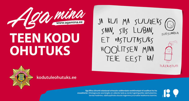 Avaldatud: 6 detsember, 2017Päästeamet osaleb eeskujukampaanias „Aga Mina“ sõnumiga „Aga mina teen kodu ohutuks”. Päästeamet kutsub lapsevanemaid üles pöörama rohkem tähelepanu kodus valitsevatele ohtudele, just lapsevanema roll on luua lapsele ohutu kodu, kus kasvada suureks.