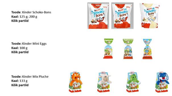 Amet: Kõik Ferrero Ardennes S.A Belgia tootja Kinder kaubamärgi maiustused kutsutakse turult tagasi
