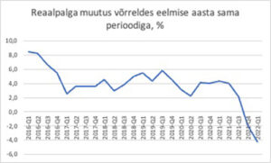 Reaalpalga muutus 2016-2022. Allikas: Statistikaamet