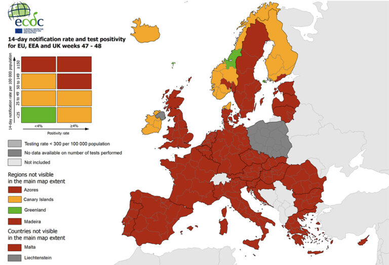 Avaldatud: 3 detsember, 2020Euroopa haiguste kontrollikeskuse ECDC värske info nakatumiste kohta Euroopas näitab, et Eesti rühib koos Lätiga Euroopa tippu ning Leedu on juba 3. kohal.