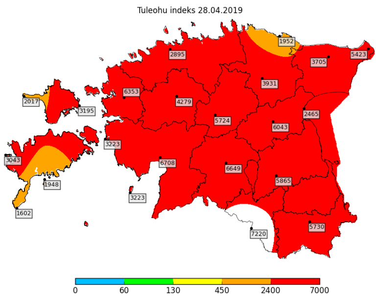 Avaldatud: 28 aprill, 2019Riigi ilmateenistus avaldas täna tuleohutuse kaardi, mille järgi on tuleohuindeks „punases” ehk ülisuur üle terve Eesti. Valga ümbruses aga on tuleoht lausa üüratu.