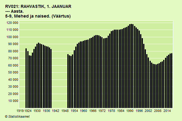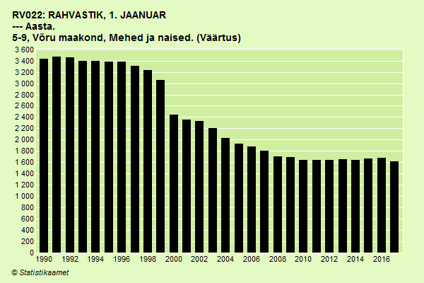 Siin Statikstikaameti ülevaade 5-9-aastaste laste arvust Võrumaal nõukogude ajal lõpust 1990. aastal kuni tänavuse aastani: