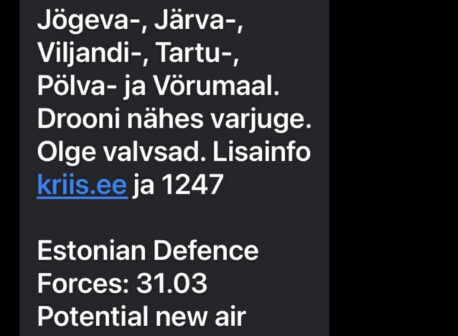 Kell 0.30 saatis kaitsevägi SMS-i, kus hoiatas võimaliku õhuohu eest Ida- ja Lääne-Virumaal ning palus inimestel olla valvsad ning drooni nähes varjuda.