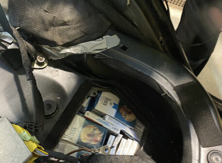 24. märtsil saabus tollipunkti sisenevale suunale Leedu registreerimisnumbriga Land Rover Range Rover, mida juhtis 38-aastane Valgevene kodanik, kelle jaoks oli see korduv piiriületus aasta jooksul. Sõiduk suunati kontrolliks läbivalgustusse, kus ametnikel tekkis kahtlus, et sõiduauto kerekonstruktsioonidesse võib midagi peidetud olla. Läbivaatuse käigus avastati sõiduki tagumise istme alt kaks luuki, pagasiruumi poolraamidesse ehitatud kaks luuki ning esiporitiibade alt samuti kaks luuki. Peidikutest avastati kokku 44 280 Valgevene päritolu sigaretti „Minsk” ja „NZ Gold”. Isiku selgituse kohaselt kavatses ta toimetada sigaretid Leetu edasimüügiks. Sigaretid kuuluvad kaubagruppi 2402, mis on kantud Euroopa Nõukogu määruse nr 765/2006 XXVII lisasse. Vastavalt sellele on keelatud otse või kaudselt osta, importida või üle anda liitu XXVII lisas loetletud Valgevenest pärit või Valgevenest eksporditavaid kaupu, mis annavad Valgevenele võimaluse mitmekesistada oma tuluallikaid, võimaldades seeläbi Valgevenel osaleda Venemaa agressioonis Ukraina vastu. Isikut karistati kiirmenetluses 1 aasta vangistusega tingimisi 2-aastase katseajaga, lisakaristusena Eesti Vabariiki sissesõidukeeld 3 aastaks. Sigaretid konfiskeeriti ja sõiduki kui kuriteo toimepanemise vahendi konfiskeerimise asendamiseks mõisteti isikult välja 3400 eurot. Kohtuotsus on jõustumata.