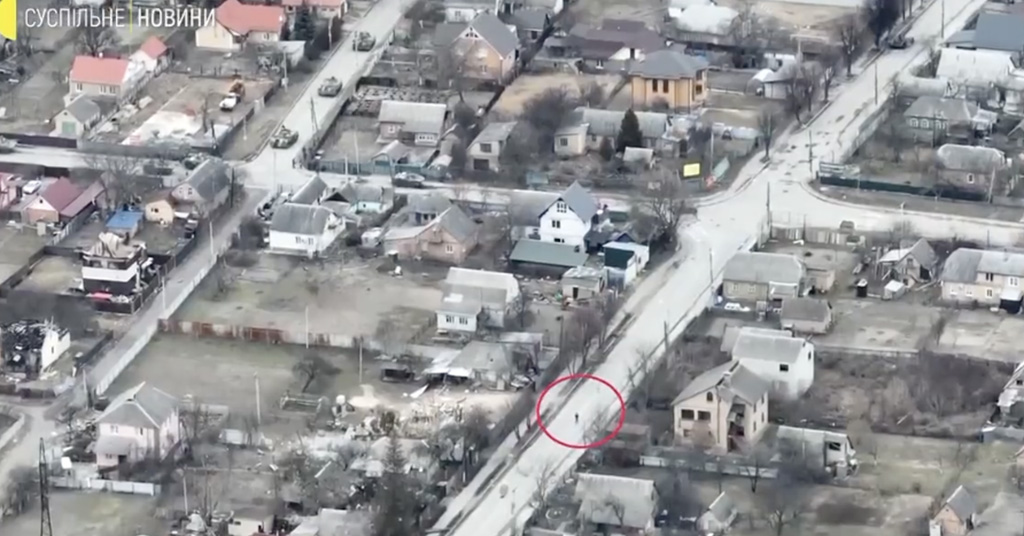 Droonivideo näitab, kuidas Vene tankist tulistati Butša linnas ratturit