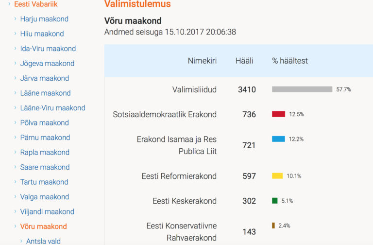 Avaldatud: 15 oktoober, 2017E-hääled on kokku loetud. Vabariigi valimisjaoskonna info kohaselt juhivad Võrus linnas e-häälte põhjal sotsid, Põlvas ja Valgas aga Reformierakond.