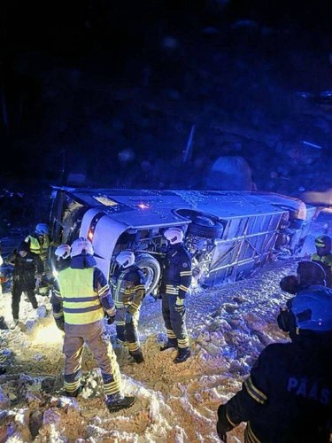 Siin on pilt Tallinn-Tartu maanteel Neanurme ligidal ümber läinud sportlaste bussist: