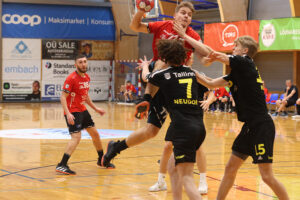 Alfred Timmo murdmas läbi HC Tallinna kaitse. Foto: Merlin Raudkett