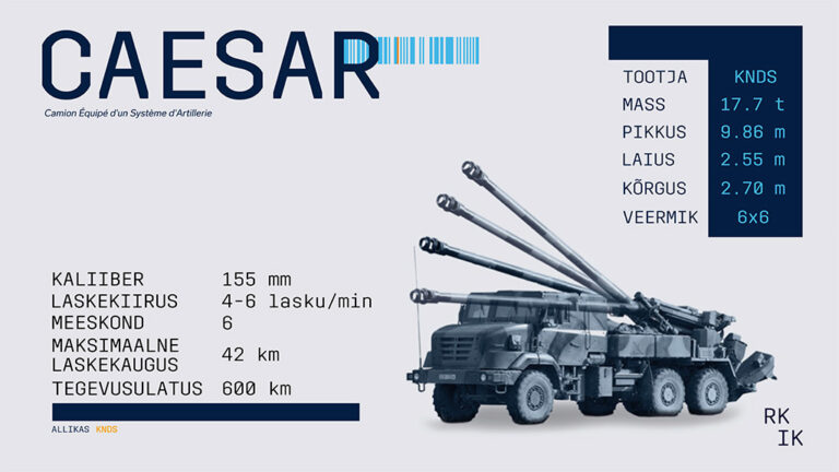 Avaldatud: 19 juuni, 2024Riigi kaitseinvesteeringute keskus (RKIK) sõlmis Prantsuse kaitsehangete agentuuriga DGA ja kaitseettevõttega KNDS lepingud 12 ratastel liikursuurtüki CAESAR hankimiseks, leping lubab tulevikus haubitsaid juurde osta. Lepingud allkirjastati maailma ühel suuremal kaitsetööstusmessil „Eurosatory 2024” Pariisis.