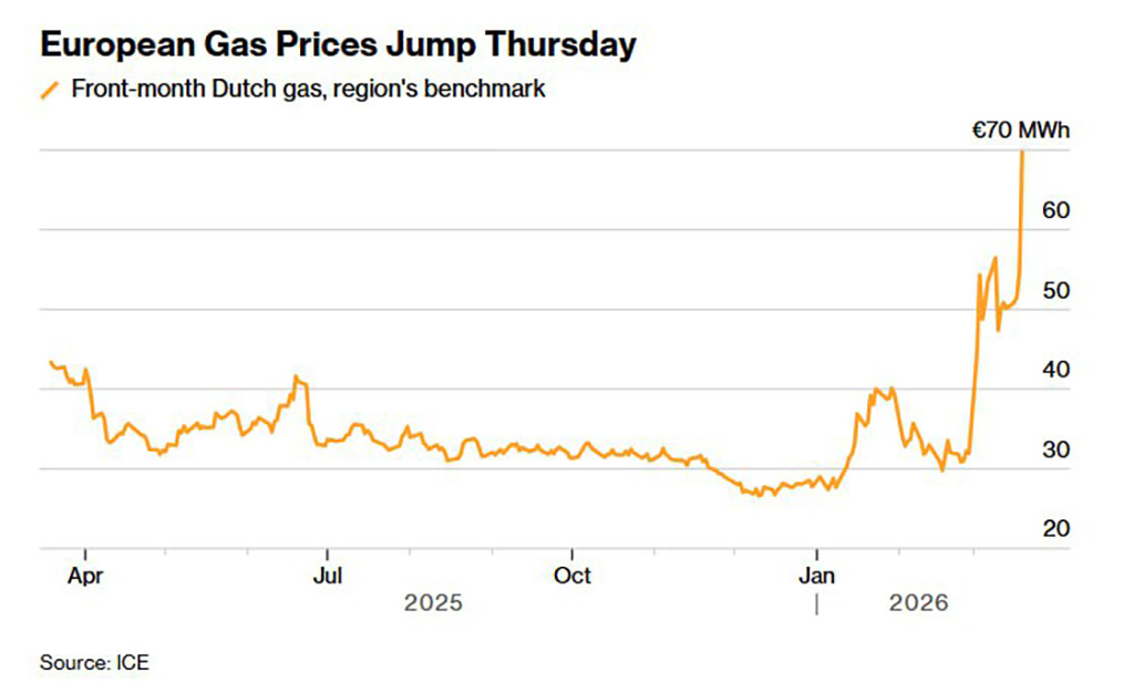 Euroopa gaasifutuurid tõusid 854 dollarini tuhande kuupmeetri kohta, mis on kõrgeim hind alates 2022/23 talvest ja ligi 200 dollarit kõrgem kui eile.