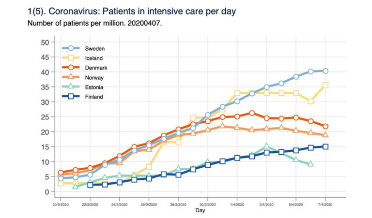 Avaldatud: 9 aprill, 2020Soome teadlane on kokku pannud graafiku, kuhu on kantud koroonaviirusega intensiivravile sattunud patsiendid Põhjamaades suhtena elanike arvu. Graafikust tuleb välja, et kõige paremas seisus on Soome ja Eesti, kõige kehvem on olukord Rootsis.