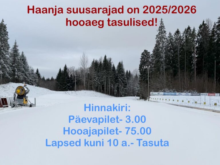 Avaldatud: 25 detsember, 2025Haanja suusarajad on alates sellest hooajast tasulised, kuna soovitakse jätkuvalt pakkuda väga heal tasemel radade ettevalmistust.