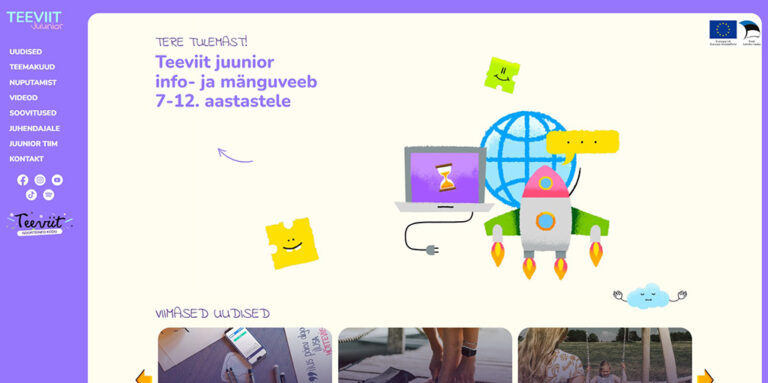 Avaldatud: 21 september, 2022Haridus- ja Noorteamet avas sel nädalal lastele mõeldud info- ja mänguportaali Teeviit juunior. Portaali tehakse koostöös Lastekaitse Liiduga ja see on mõeldud 7–12-aastastele lastele, lapsevanematele ning lastega töötavatele spetsialistidele.