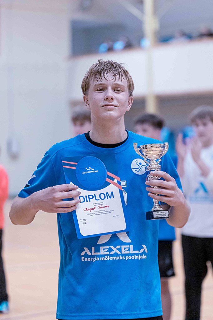 EKV 2025 PU14 parim mängija August Tuuder HC Viimsi/ Vitamin Well. Foto: Arvi Sirm/ Eesti Käsipalliliit
