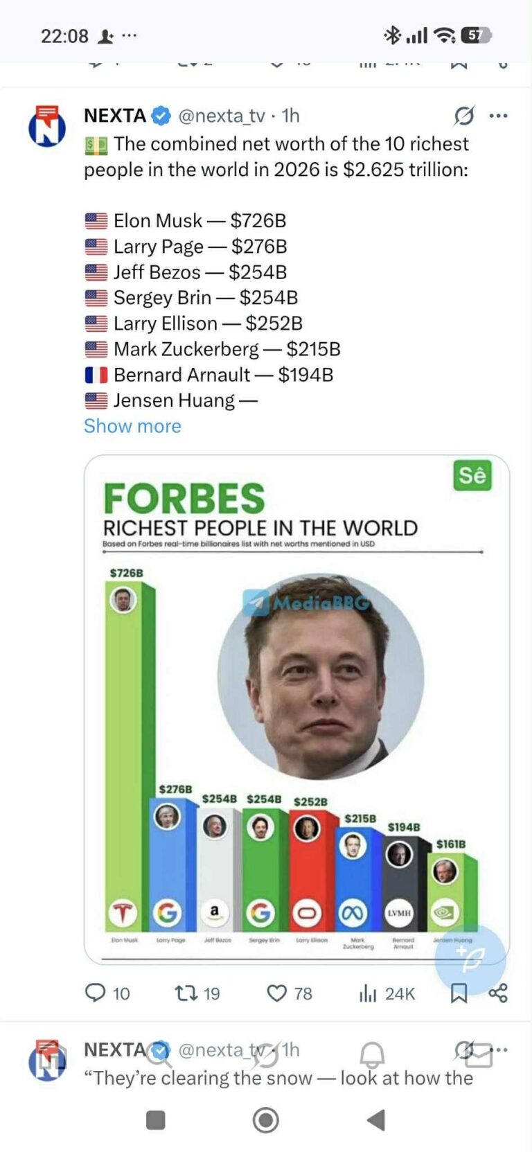 Avaldatud: 25 jaanuar, 2026Ajakiri Forbes järjestas maailma jõukaimad. Üks on teistest peajagu üle – see on Elon Musk, vara väärtus 726 miljardit dollarit.