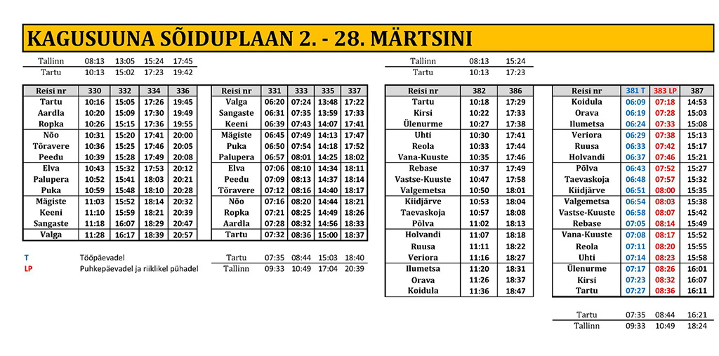 Muudetud sõiduplaan on siin: