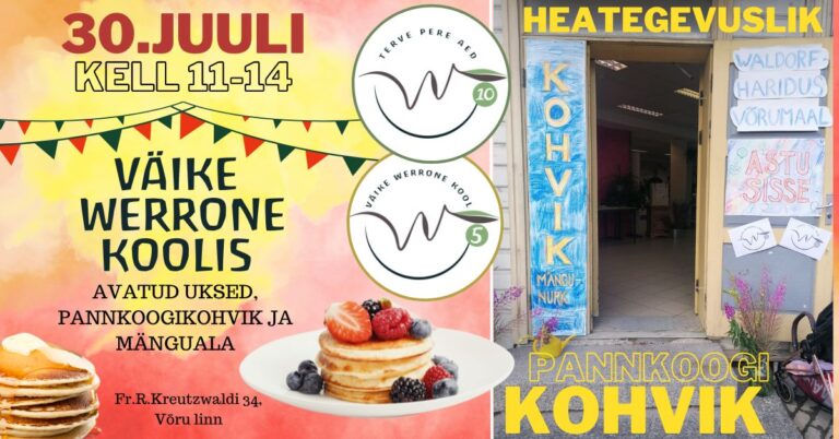 Avaldatud: 29 juuli, 2023Homme pühapäeval, kell 11-14 on Võru linnas Kreutzwaldi ja Vabaduse tn ristmikul endises A&O poes asuvas Väikse Werrone Kooli majas avatud heategevuslik kohvik.