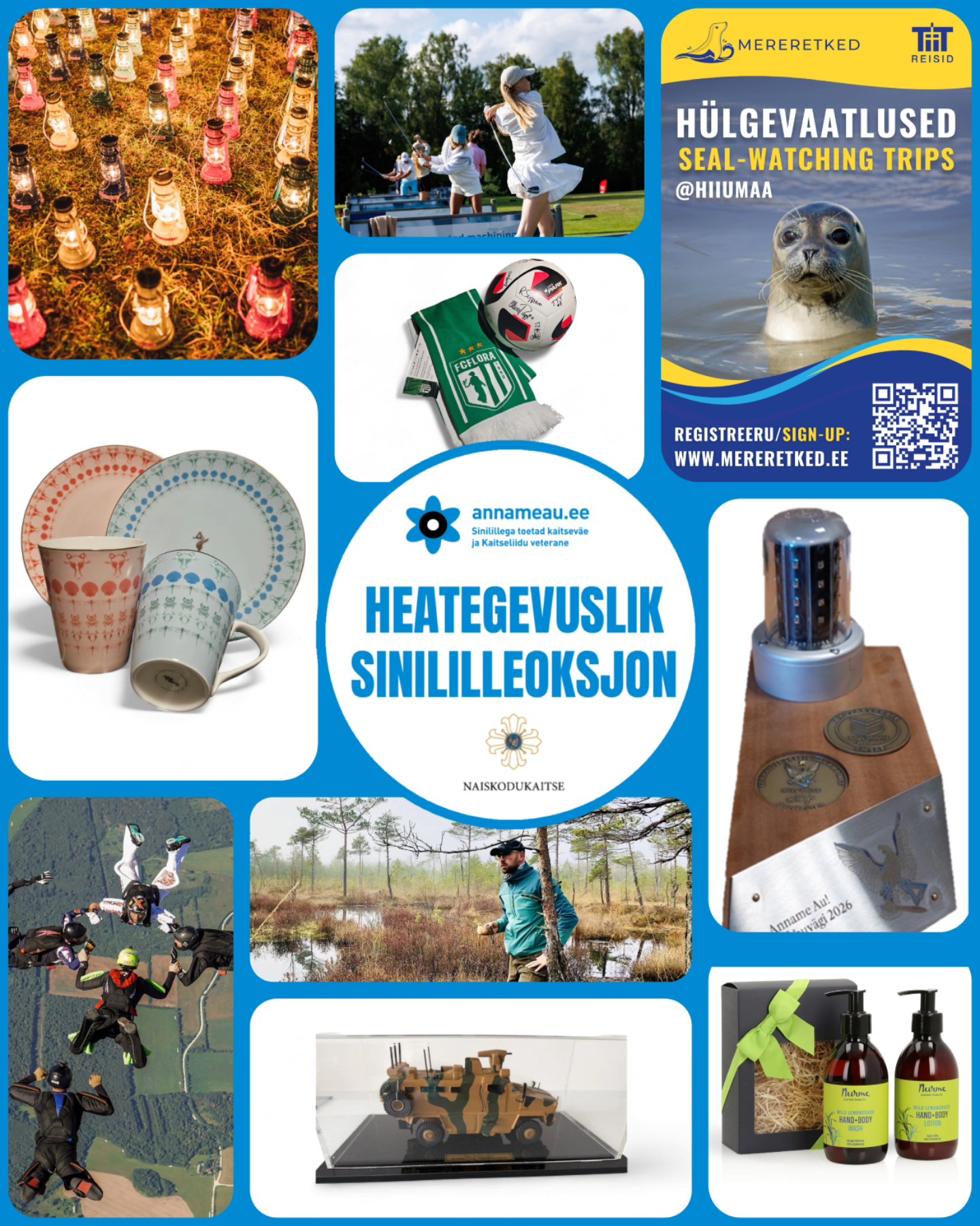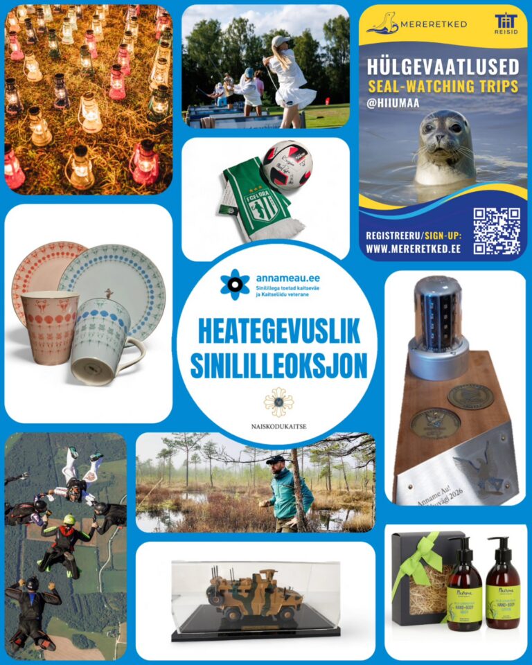 Avaldatud: 7 aprill, 2026Esmaspäeva, 6. aprilli õhtul algas nädal aega kestev Naiskodukaitse heategevuslik veebioksjon, mis toimub Sinilillekampaania „Anname au!” raames. Oksjon toob kokku erakordselt mitmekesise valiku elamusi, spordimeeneid, kunstiteoseid, koolitusi ja pereelamusi üle Eesti.