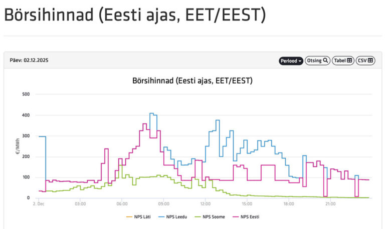 Avaldatud: 1 detsember, 2025Börsielekter on homme teisipäeval, 2. detsembril Eestis taas väga kallis, hommikusel tippajal kella 7.30 ajal ligi 400 eurot MWh kohta. Võrdluseks, Soomes on hind alla 100 euro MWh kohta.