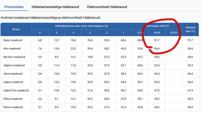 Kuigi kell on alles peale 13, on vabariigi valimiskomisjoni andmetel valimisaktiivsus kella 16 seisuga juba teada.