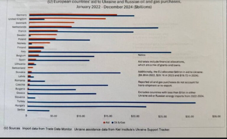 Avaldatud: 8 detsember, 2025USA välisministeerium on koostanud tabeli Euroopa riikidest, mis on Ukrainat aidanud ja Venemaalt energiat ostnud.