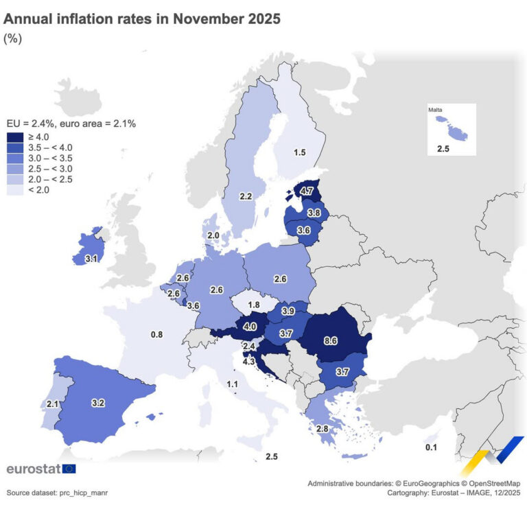 Avaldatud: 18 detsember, 2025Eesti on ometi Euroopas esirinnas: seda hinnatõusu poolest. Eesti on oma 4,7 protsendiga Eurostati andmetel Rumeenia järel kohe teisel kohal.