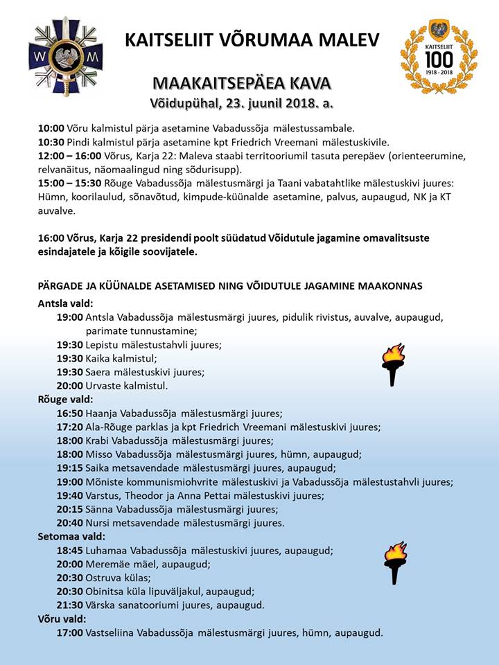 Kaitseliidu Võrumaa maleva tänase Maakaitsepäeva kava