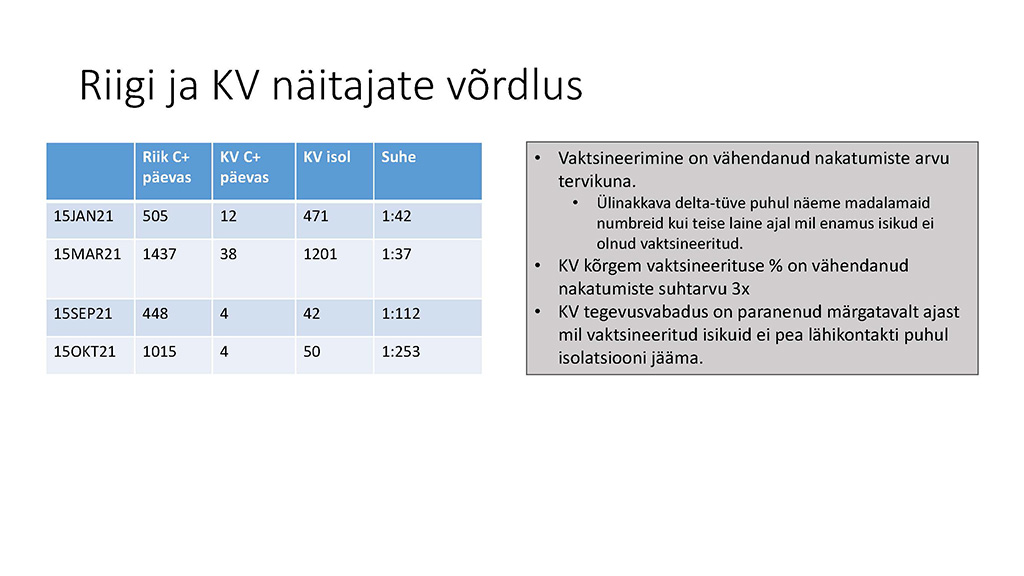 „Kevadel, teise laine tipphetkel oli kaitseväes nakatunuid 269 ning isolatsioonis ligi 1200 inimest. Täna, ajal kui riigis on nakatumiste arv selgelt tõusuteel, on kaitseväes kokku 40 nakatunut ning isolatsioonis lisaks neile 9 inimest. Vahest kõige olulisem märk vaktsineerimise positiivsest mõjust on see, et kui kaitseväes ka tekib uusi nakatunuid, on neid vaid mõned üksikud – vaktsineerimine pärsib nakatumist ning viiruse võimalikku levikut kaitseväe sees,“ lisas kolonelleitnant Lusti.