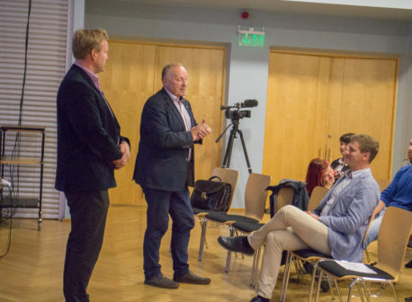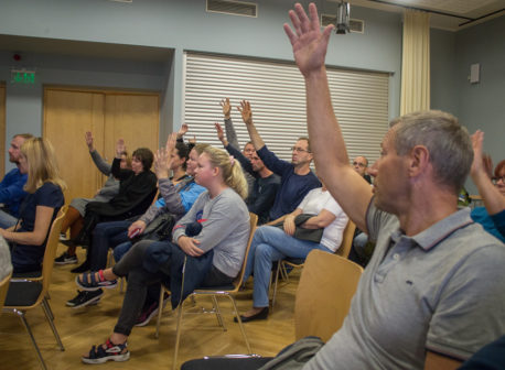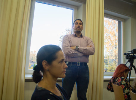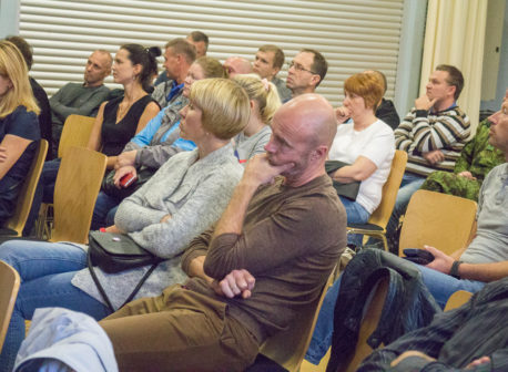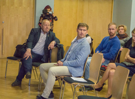 Teatrimaja teise korruse saal sai rahvast pilgeni täis – kohal olid nii linnaosa elanikud, Kuperjanovi pataljoni ülem kui Võru linnajuhid eesotsas linnapea Anti Allase, abilinnapea Toomas Sarapuu ja volikogu esimehe Ülo Tulikuga. Tagumises reas istus veel ka Võru Vee juht Juri Gotmans.