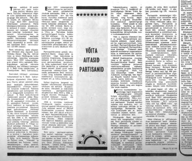Artiklist tuleb välja, et hilisem Võru 2. keskkooli sõjandusõpetaja Oktrev Volin kuulus 1944. aasta augustis Eestisse saabunud diversioonigrupi koosseisu. „Hiljem andis ta oma rikkalikke teadmisi ja oskusi edasi oma õpilastele,” kirjutab leht.
