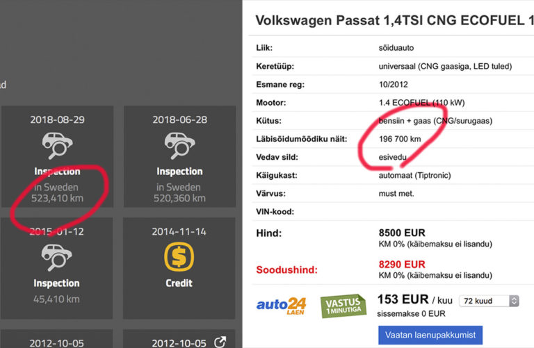 Avaldatud: 6 november, 2018Auto ostmisega on sama lugu nagu Stalini-aja propagandaga: isegi, kui ainult poolt usud, oled ikka petta saanud. Siin on näide, kuidas auto läbisõit on 523 410, aga kuulutuses on märgitud 196 700.