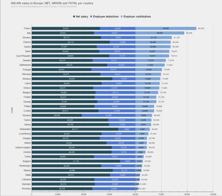Kõige rohkem saab selle summa pealt töötaja kätte Šveitsis, Bulgaarias ja Moldovas, kõige vähem Sloveenias, Portugalis ja Rootsis.