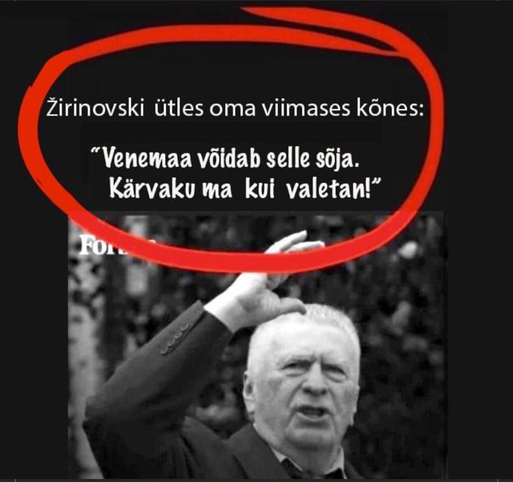 Avaldatud: 11 aprill, 2022Äsja meie hulgast lahkunud Vene poliitik, enne seda end mitmekordselt koroona vastu vaktsineerida lasknud Vladimir Žirinovski lubas, et enne kärvab, kui Venemaa peaks sõja kaotama.