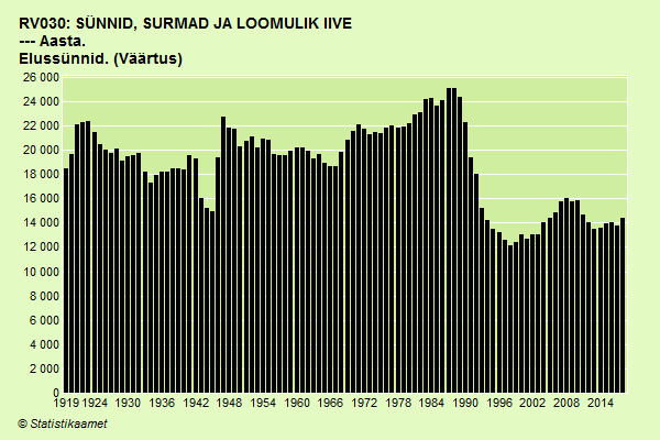 Eesti rahva rahvusliku ärkamise ajal 1987. ja 1988. aastal sündis Eestis üle 25 tuhande lapse. Pärast seda tuli ajalooline kukkumine ja praegu sünnib lapsi isegi vähem kui nälja- ja sõja-ajal.