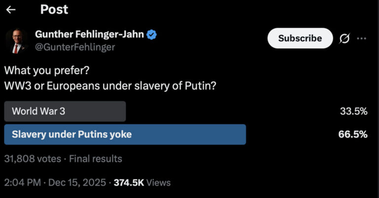 WW3 or Europeans under slavery of Putin?— Gunther Fehlinger-Jahn (@GunterFehlinger) December 15, 2025
