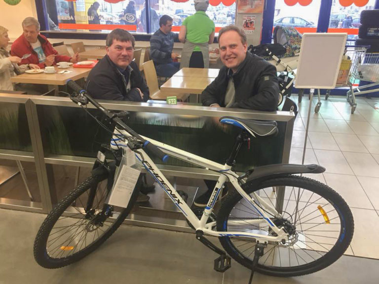 Võru linnaisad Pihkvas jalgratast ostmas. Vasakul Taristuhalduse juht Andres Visnapuu, paremal linnapea Anti Allas. Kujutis: Facebook Võru linn on viimasel ajal eriti must ja räpane. Umbes nagu Venemaal. Aga see pole ime, sest Võru linnaisad võtavadki šnitti Venemaalt!