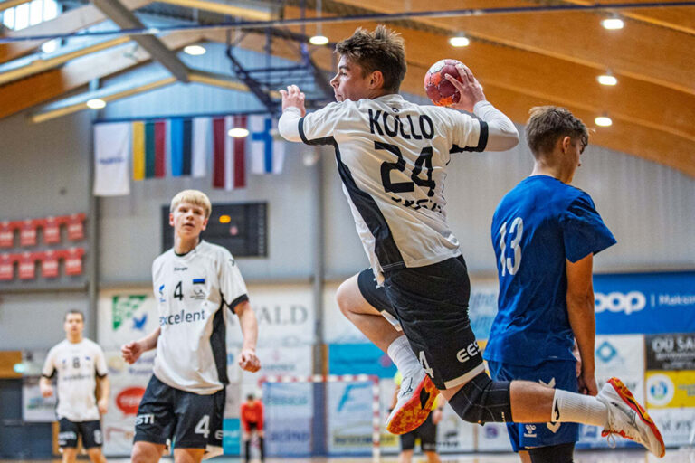 Oliver Kollo (palliga) üheksa väravat aitasid Eesti võidule. Foto: Karl-Fredy Kruup/ Eesti Käsipalliliit Täna jätkas Eesti käsipalli noortekoondis Põlvas Mesikäpa hallis Balti mere turniiri, kus eile jäädi alla Läti eakaaslastele. Laupäeva pärastlõunal kohtuti Soome meeskonnaga, kes eile alistas põnevas võitluses Leedu 27:26.