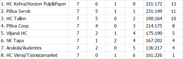12.12. 19:00 HC Kehra/Horizon Pulp&Paper – Aruküla/Audentes