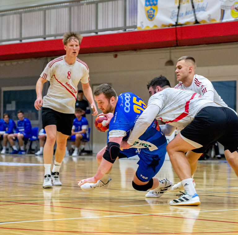 HC Kehra ja Mistra pidasid kolmapäeva õhtul põneva lahingu. Foto: Joonas Kuuskla/ Eesti Käsipalliliit Täna peeti meeste käsipalli meistriliigas kolm kohtumist. Põlvas läksid vastakuti tabeli eriotstes paiknevad Serviti ja HC Tallinn.
