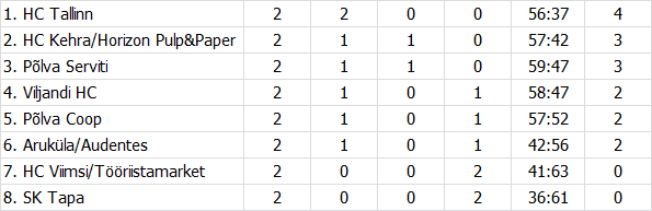 Avaldatud: 21 september, 2018Neljapäeval selgusid meest käsipalli meistriliigas kahe mängu võitjad. Esimese võidu sai tabelisse Põlva Coop, olles üle SK Tapast 36:19 (19:11).Täiseduga jätkab HC Tallinn, kes alistas HC Viimsi/Tööriistamarketi 31:20 (15:12).