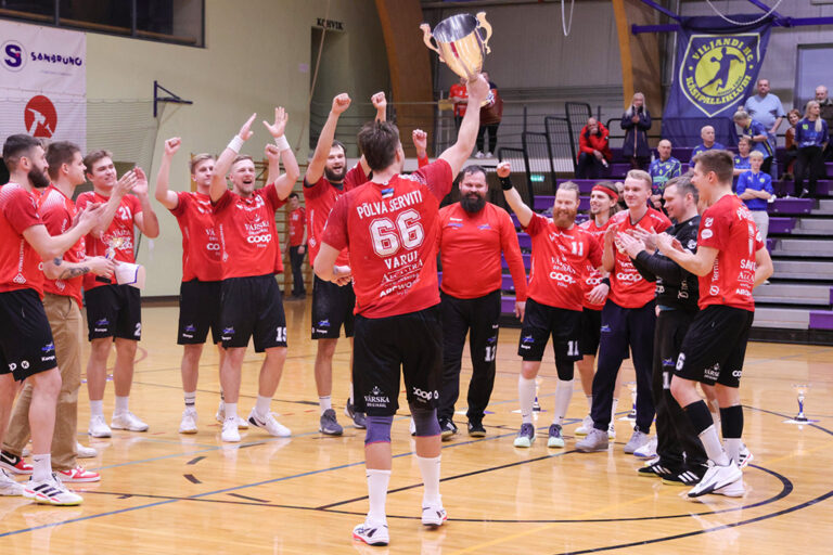 Eelmisel nädalavahetusel karikavõitjaks tulnud Serviti jätkas ka meistriliigas võidukalt. Foto: Merlin Raudkett/ Põlva Serviti Kui eile oli Eesti meeste käsipalli meistriliigas HC Kehra/Horizon Pulp&Paper alistanud HC Viimsi/Alexela, siis täna läksid Tapal vastamisi kohalik Team Kaitsevägi ning eelmisel nädalavahetusel karikavõitjaks tulnud Põlva Serviti.