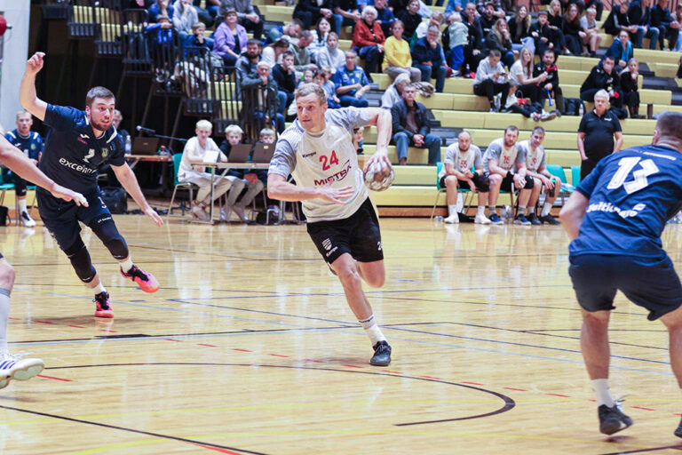 Karl Roosna (palliga) naases uues särgis kasvatajaklubi publiku ette ning Mistra alistas Viljandi. Foto: Helin Potter/ Viljandi HC Täna jätkus meeste käsipalli Balti liiga, kus hooaja esimeses topeltpunktidele toimunud kohtumises võõrustas Viljandi HC Mistrat. Mängu võit läks kirja ka Eesti meistriliiga arvestusse. Mistra ei olnud enne tänast kummaski sarjas kaotusekibedust tundnud. Viljandil oli mõlemas liigas kirjas üks kaotus.