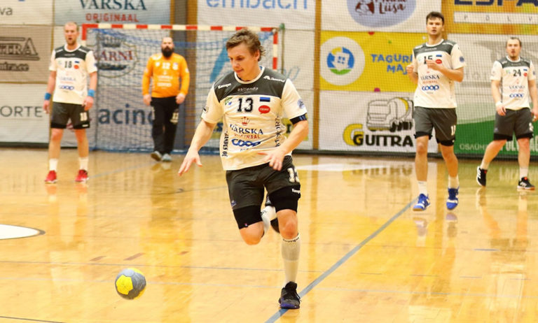 Henri Sillaste tõmbas avapoolajal Põlva Serviti rünnakumootori käima ning Aruküla sellele pidureid peale ei saanudki. Foto: Helin Potter/arhiiv Meeste meistriliigas algas 16. vooruga põhiturniiri neljas ja viimane ring. Liigatabeli kaks esimest alustasid seda kindlate võitudega, sest Põlva Serviti alistas Aruküla/Audentese 38:17 (22:7) ning HC Tallinn oli 29:19 (15:7) üle SK Tapast. Neljapäeval lähevad vastamisi HC Kehra/Horizon Pulp&Paper ja Viljandi HC.