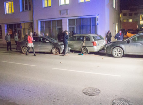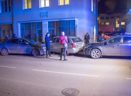 Avaldatud: 6 november, 2017Võru kesklinnas Jüri tänaval otse linnavalitsuse akende all toimus täna kella 17 ajal kolmikavarii, kus kokku olid sõitnud kolm sõiduautot.