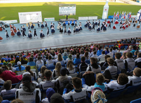 Avatseremoonial tutvustasid noortele üle maailma Eesti laulu-ja tantsupeokultuuri 130 rahvatantsijat.
