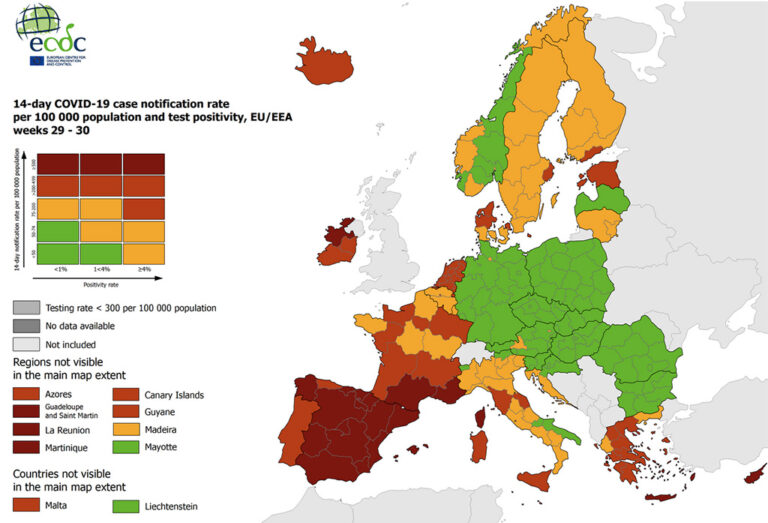 Siin on ECDC värske koroona ülevaade, 30. nädala seisuga: