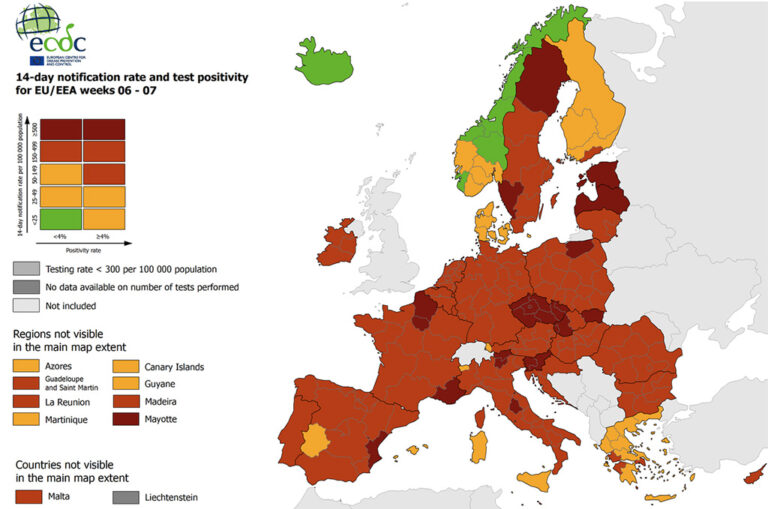 Avaldatud: 25 veebruar, 2021Euroopas on koroona epitsentriks tõusnud Balti riigid eesotsas Eestiga, Soome tase aga püsib jätkuvalt väga madal, selgub Euroopa haiguste kontrollikeskuse ECDC värskest ülevaatest.