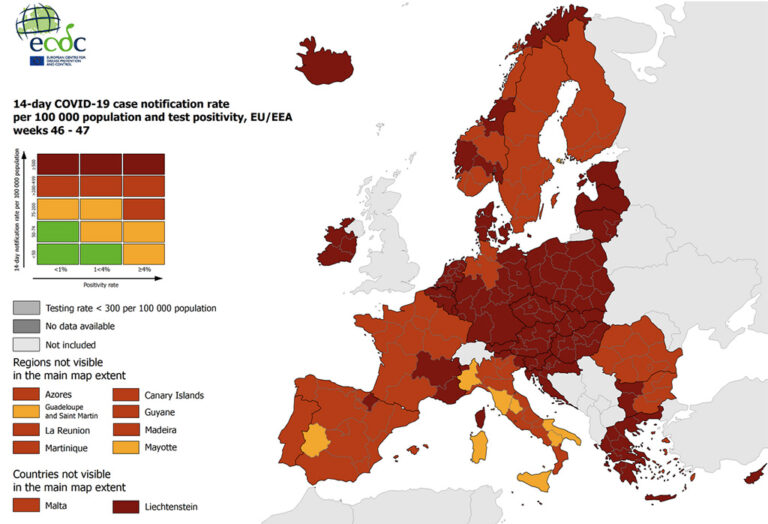 Koroona ülevaade Euroopas, 47. nädal 2021: Euroopa on täiesti punane, Eesti tase langeb