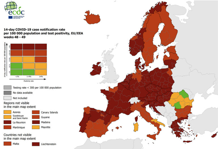 ECDC indikatiivsel koroonakaardil on terve Euroopa punane, välja arvatud madala vaktsineeritusega Rumeenia, kus on lausa rohelised laigud. See näitab, et vaktsineeritus ei oma koroona olukorras erilist tähendust. Uue Omikroni variandi puhul pole vaktsiinidest erilist kasu, mistõttu kehtestatakse üle Euroopa taas karme piiranguid. Olukord ei erine eelmisest 2020. aastast, mil samuti koroona levis kulutulena aastavahetuse paiku.